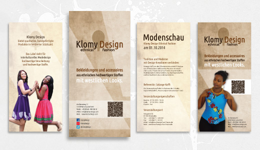 Flyer als Einladung zur Modeschau. Modedesignerin Solange Koffi von der Elfenbeinküste entwirft Designs