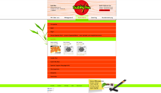 Das CMS Contao wurde auf dem Server installiert und mit benötigten Modulen ergänzt. Die Speisekarte wurde mit dem Contao-Akkordeon umgesetzt. Beim Aufklappen einer Speisereihe werden automatisch die restlichen Speisen geschlossen. Das Restaurant und Catering wird über ein Coin-Slider mit verschiedenen Bildanimationen und Slogans präsentiert. Bestellung und Kontakt werden über verschiedene Formulare abgewickelt. GoogleMap wird über ein Contao-Modul gesteuert.